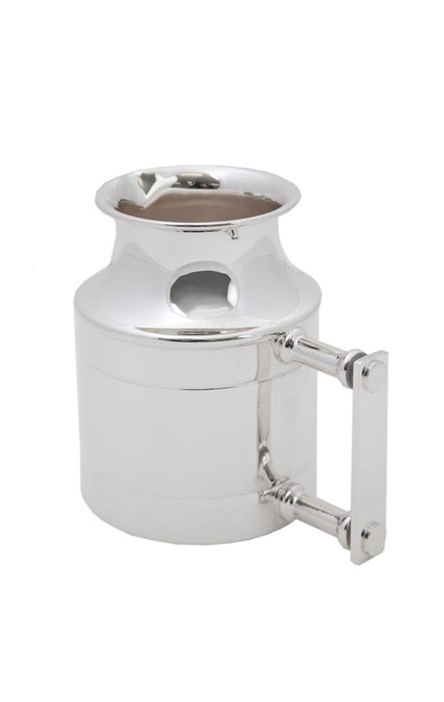 Leiteira em prata, com alça, tamanho pequeno - mesma linha das Garrafas Térmicas, com frisos.