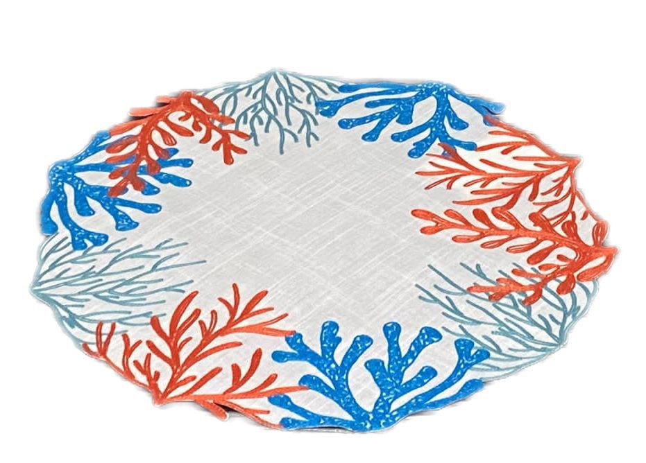 JOGO AMERICANO CORALLI BRANCO COM BORDADO CORAL E AZUL