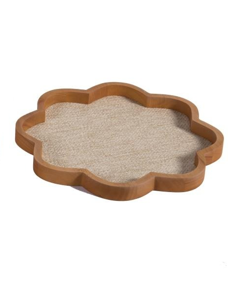 BANDEJA MADEIRA CLARA FLOR COM TRAMA NATURAL - P