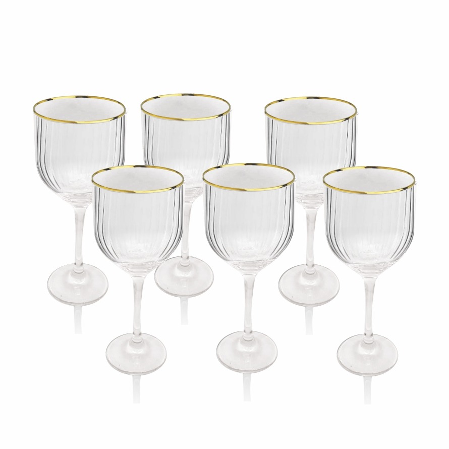 CJ 6 TAÇAS FIORE TRANSPARENTE COM FILETE OURO