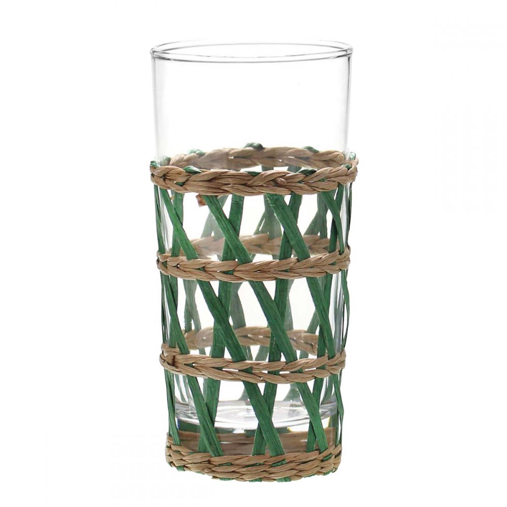 CJ DE COPOS EM VIDRO E RATTAN 6 PCS  - VERDE