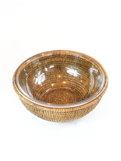 SUPORTE REDONDO EM RATTAN MAYA COM REFRATÁRIO DE VIDRO - M
