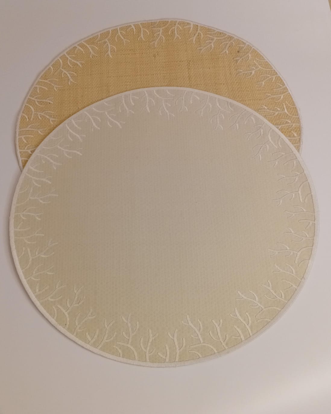 JOGO AMERICANO CORAL EM PALHA NATURAL COM BORDA BRANCO