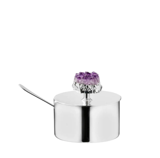AÇUCAREIRO GIOIA INOX COM PEDRA AMETISTA E COLHER