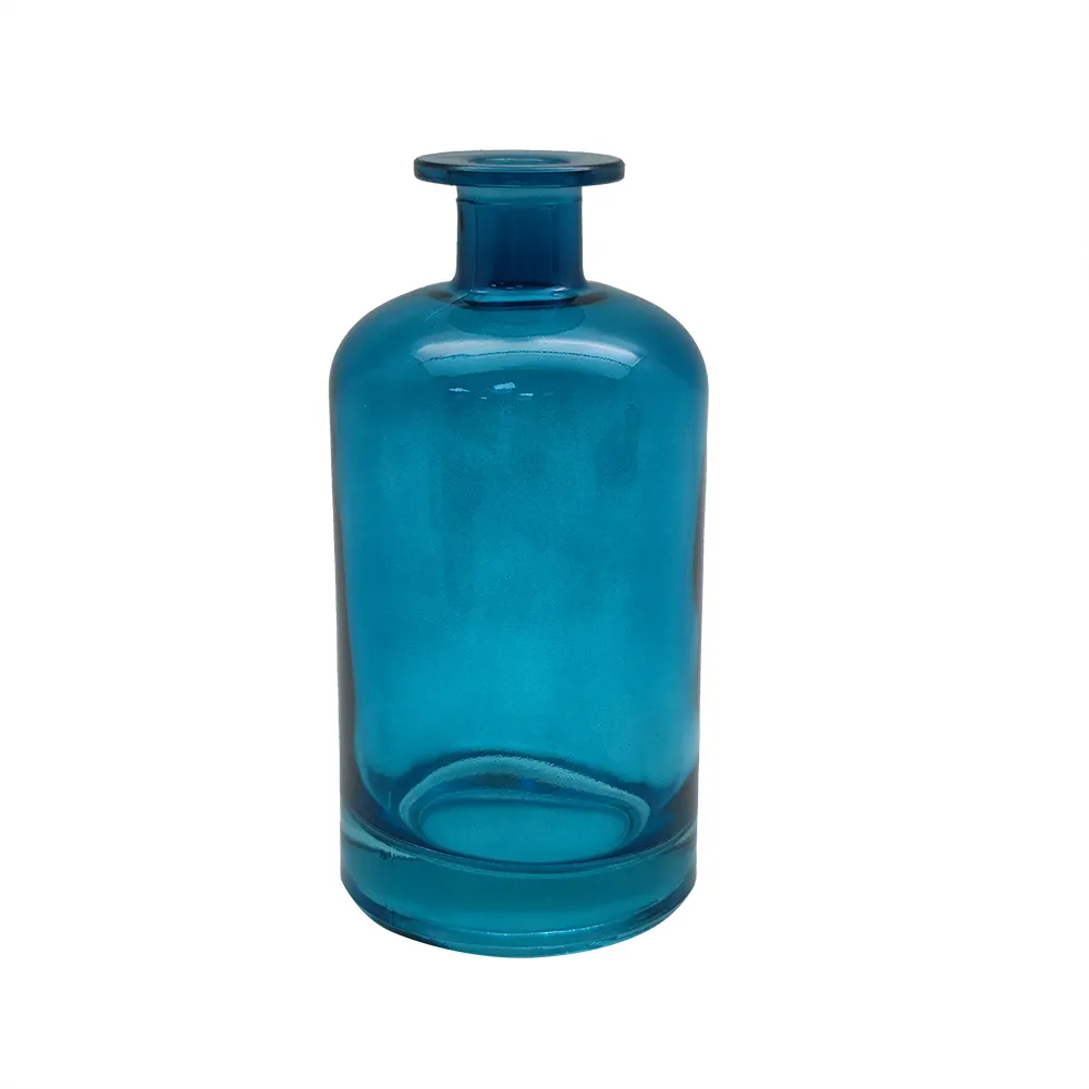 VASO GARRAFA DECORATIVO EM VIDRO AZUL - M