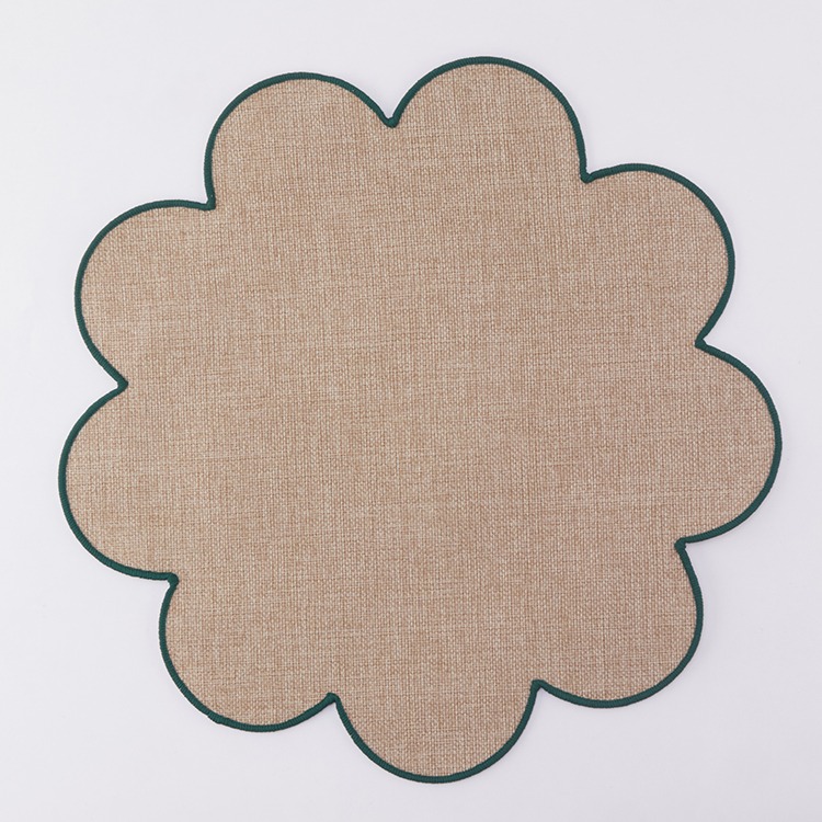 JOGO AMERICANO PALHA NATURAL COM BORDADO VERDE MUSGO