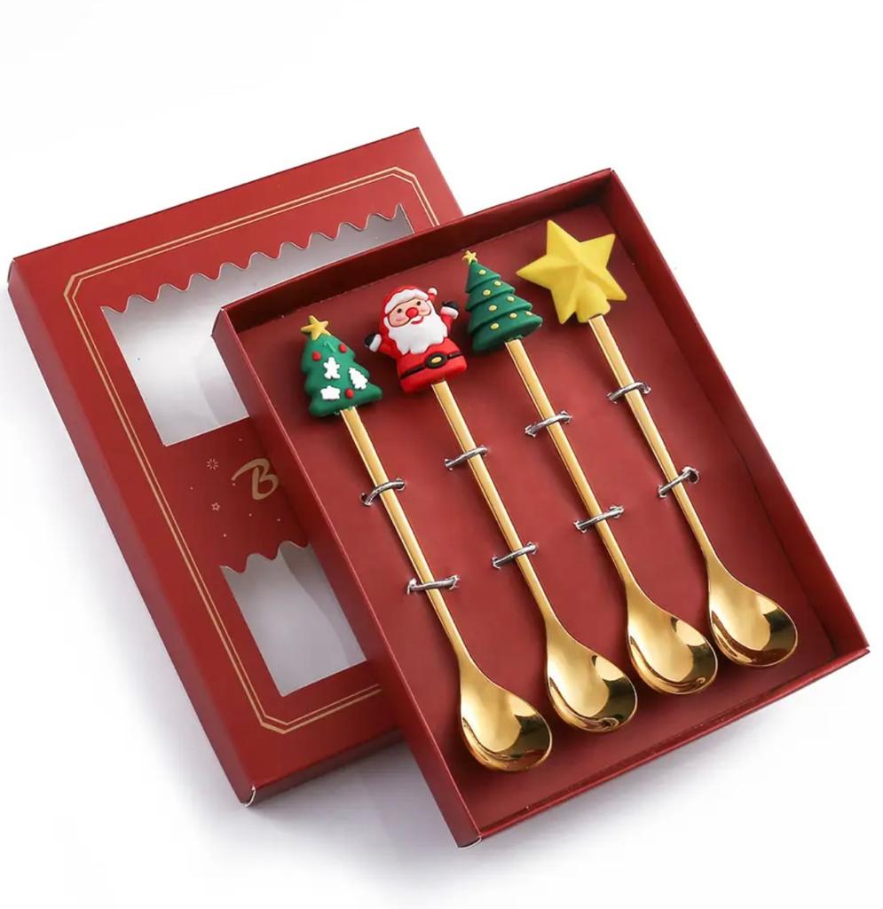 JOGO DE COLHERES DOURADO NATALINO COM 4 PEÇAS