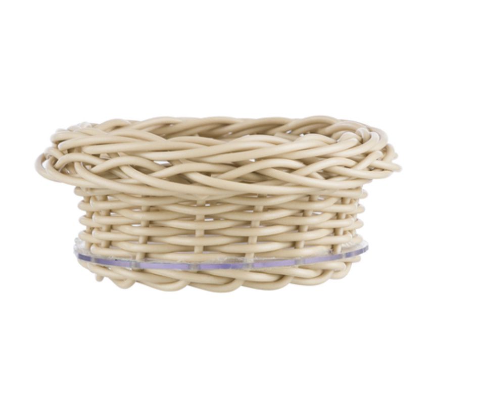 Porta manteiga Aviação redondo, em fibra sintética como vime e fundo de acrílico transparente.