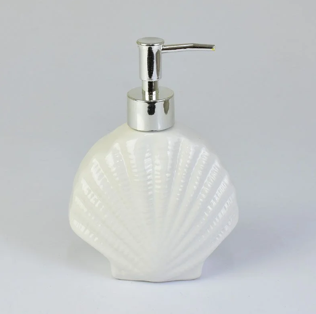 PORTA SABONETE LIQUIDO CERÂMICA BRANCA - CONCHA PÉROLA