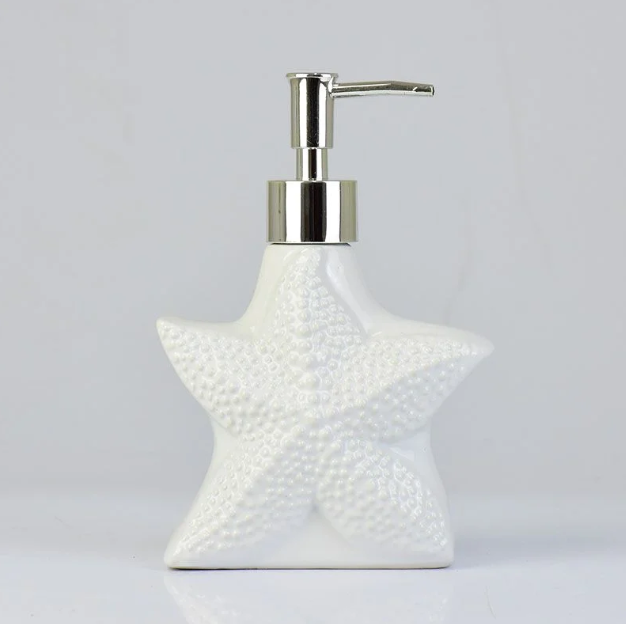 PORTA SABONETE LIQUIDO CERÂMICA BRANCA - ESTRELA DO MAR