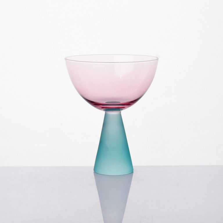 TAÇA LUA EM VIDRO DE SOBREMESA - ROSA E AZUL