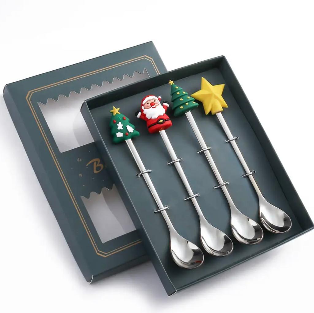 JOGO DE COLHERES PRATA NATALINO COM 4 PEÇAS